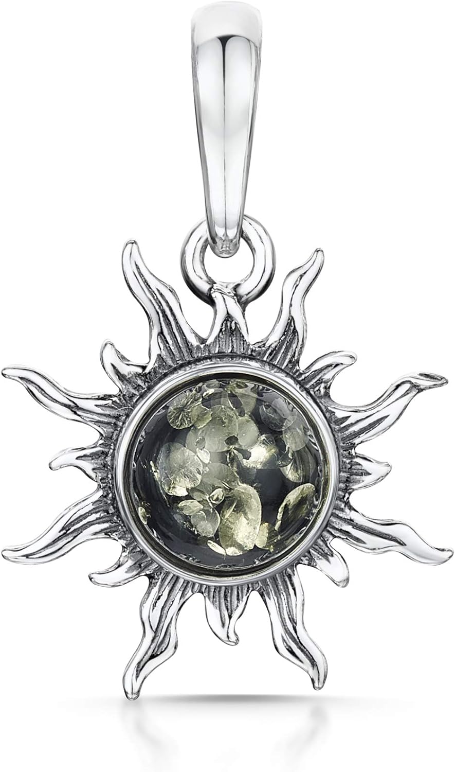 Home » Shop » Amberta 925 Sterling Silver with Genuine Baltic Amber – Sun Pendant for Women – Various Stone Colors
